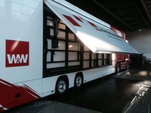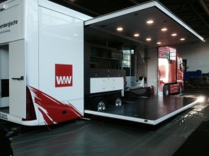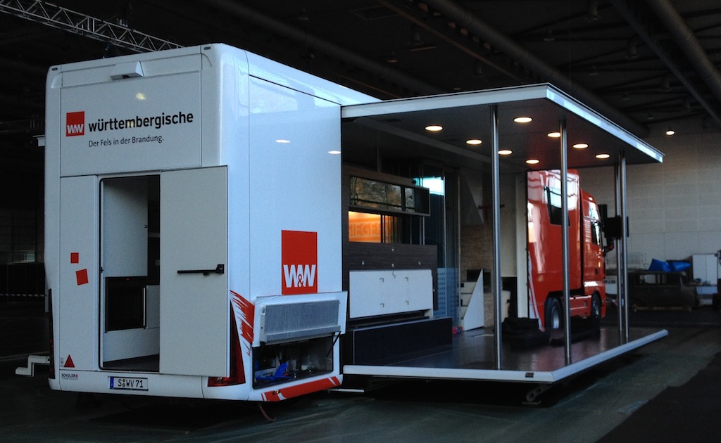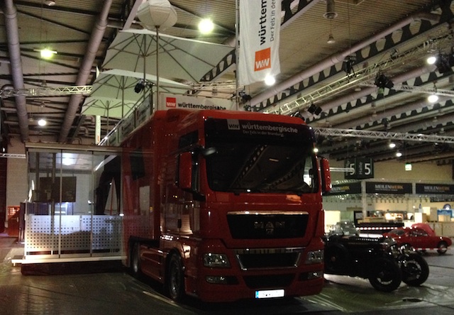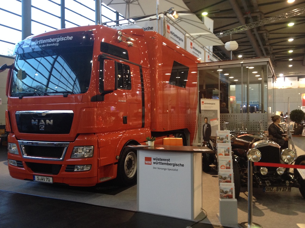 Ende Januar zieht es die Oldtimerfreunde aus dem ganzen Land nach Bremen. Mit fast 50.000qm Ausstellungsfläche in acht Hallen, rund 45.000 Besucher und 650 Ausstellern aus 12 Nationen ist die Bremen Classic Motorshow der Treffpunkt für alle Liebhaber klassischer Fahrzeuge und traditionell der erste Einsatz des Jahres für den Vorsorgetruck der Württembergischen Versicherung. Auf seinem Stammplatz in Halle 5 sorgte der 40t Sattelzug wieder einmal ordentlich für Eindruck. Im Innenraum sorgte das W&W Messeteam für die perfekte Betreuung der Gäste und die Dachterasse bot einen imposanten Überblick über die gesamte Messehalle.