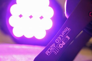 “Eine neuartige Mischoptik macht den TourLED 42 CM zur ersten Wahl, wenn es um kraftvolle und gleichmäßige Farbmischung geht. Aus seinen je 14 roten, grünen und blauen LEDs mischt der Scheinwerfer die gewünschte Farbe bereits im Gerät und verhindert so unerwünschte Farbschatten.“