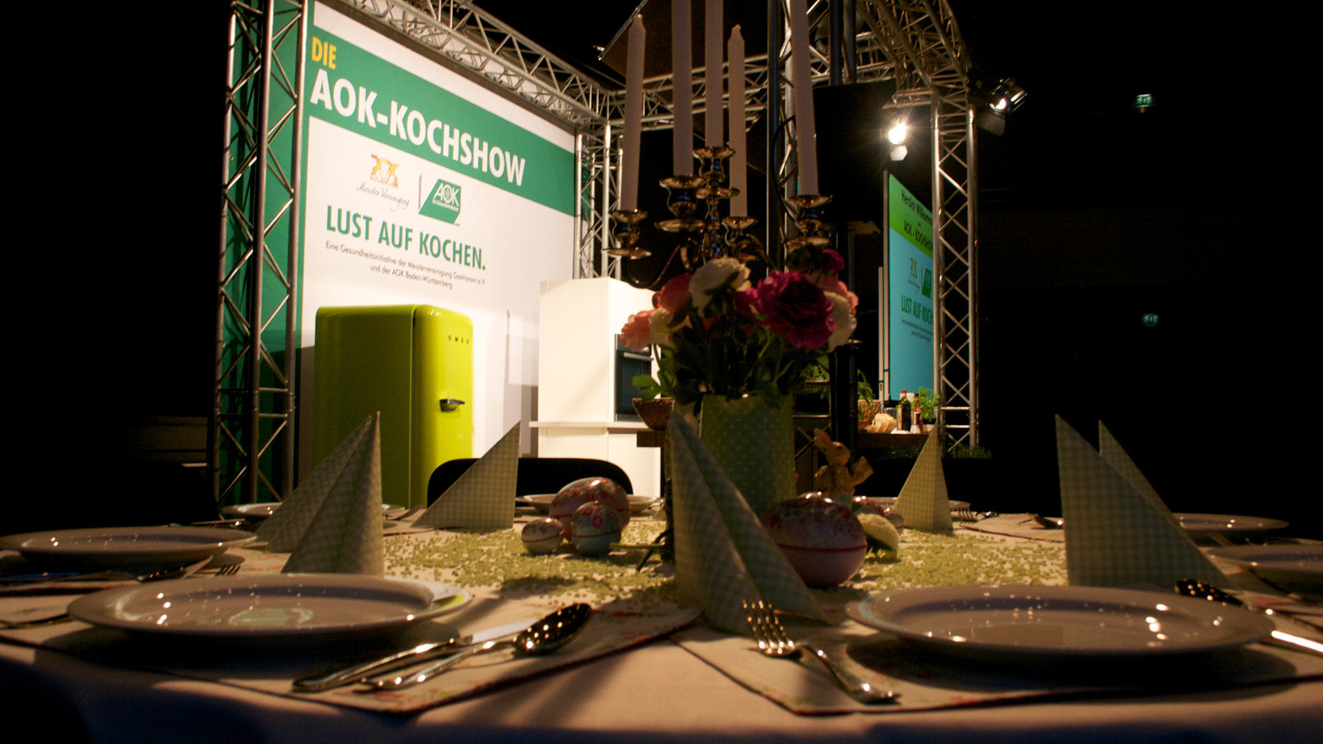 Bereits über 100 Veranstaltungen in ganz Baden-Württemberg, mehr als 25.000 begeisterte Gäste, Spitzenköche aus der deutschen Topgastronomie und jede Menge Leckereien. Das Ganze live präsentiert in Farbe und HD von prominenten Moderatoren. Unser langjähriger Partner K-Messebau hat uns mit der technischen Planung und Durchführung der Licht-Ton- und Medientechnik beauftragt.